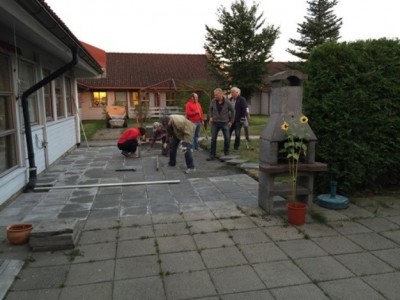 Bra oppmøte på dugnaden hvor nye steinheller kommer på plass - her med bl.a primus motor Aage Andreas